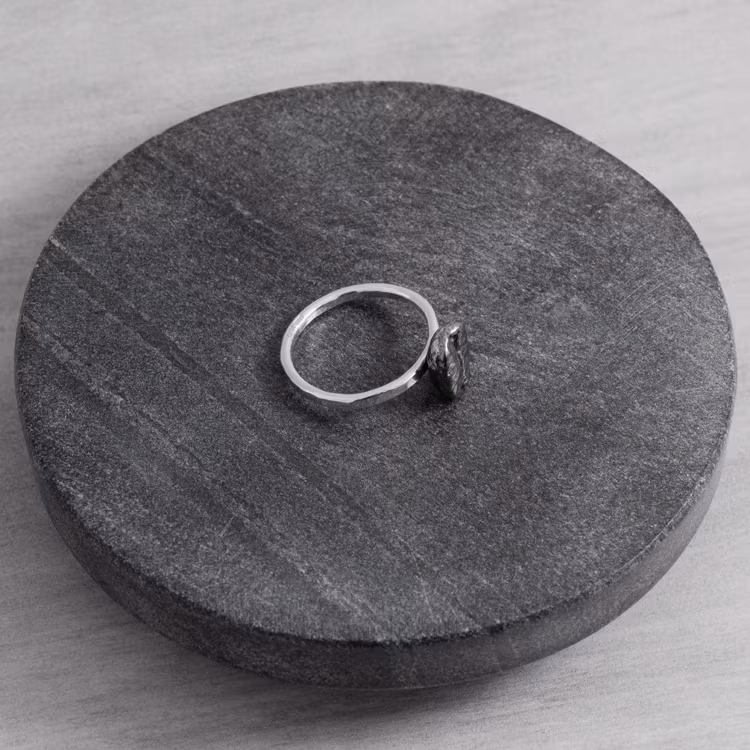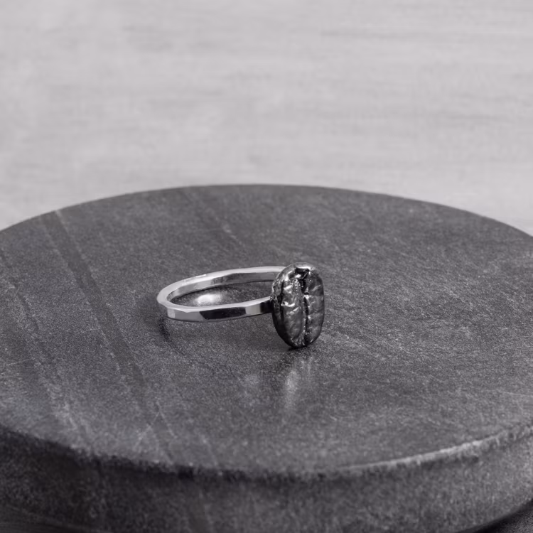 Handsmidd silverring med en kaffeböna.