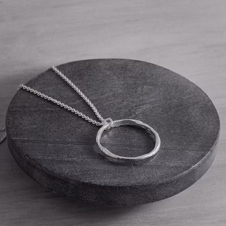 Strukturen på smycket får man genom att smälta silvret så det blir flytande på ytan.