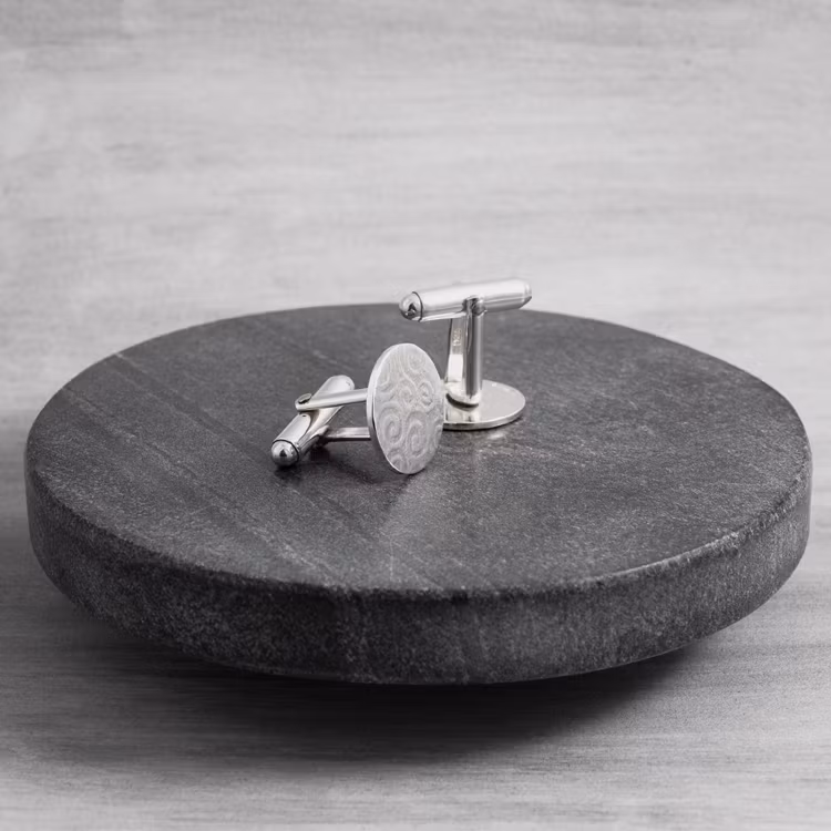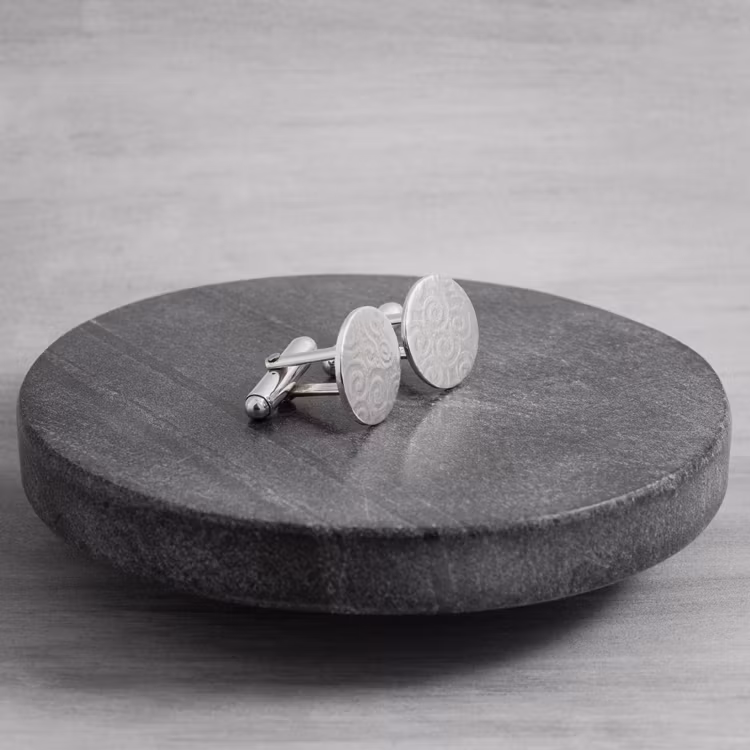 Cirkel med virvelmönster, manschettknappar i silver 1 150 kr Unika manschettknappar med virvlande mönster. I lager Lägg i korgen Lagersaldo: 1 Dela Information Recensioner LEENA JOKELA - SILVERSMYCKENHandgjorda manschettknappar med en cirkel med virvelmönster. Diametern på cirkeln är ca 16 mm.Manschettknapparna levereras i en presentask.