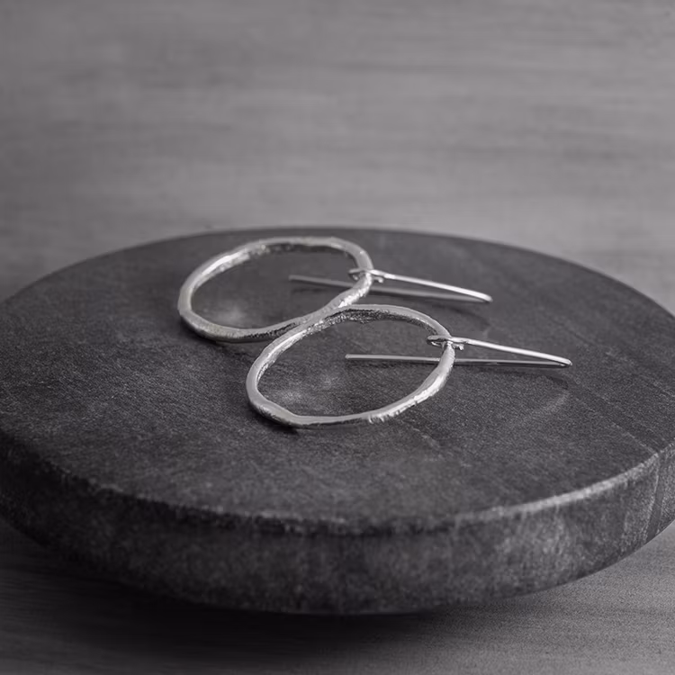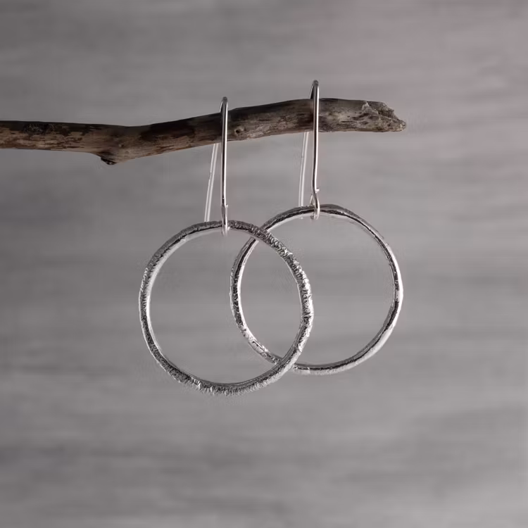 Strukturen på smycket får man genom att smälta silvret så det blir flytande på ytan.