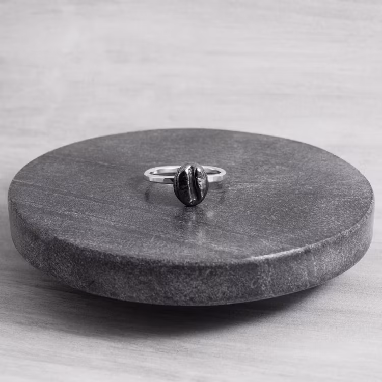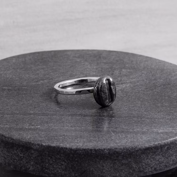 Handsmidd silverring med en kaffeböna.